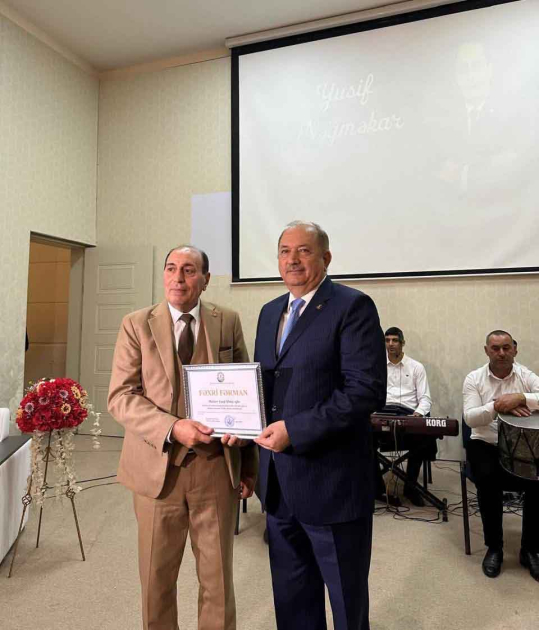 Daha sonra Yusif Nəğməkarın ədəbiyyata verdiyi töhfələr və yubileyi münasibətilə ona Beyləqan Rayon İcra Hakimiyyətinin fəxri fərmanı təqdim olunub.
