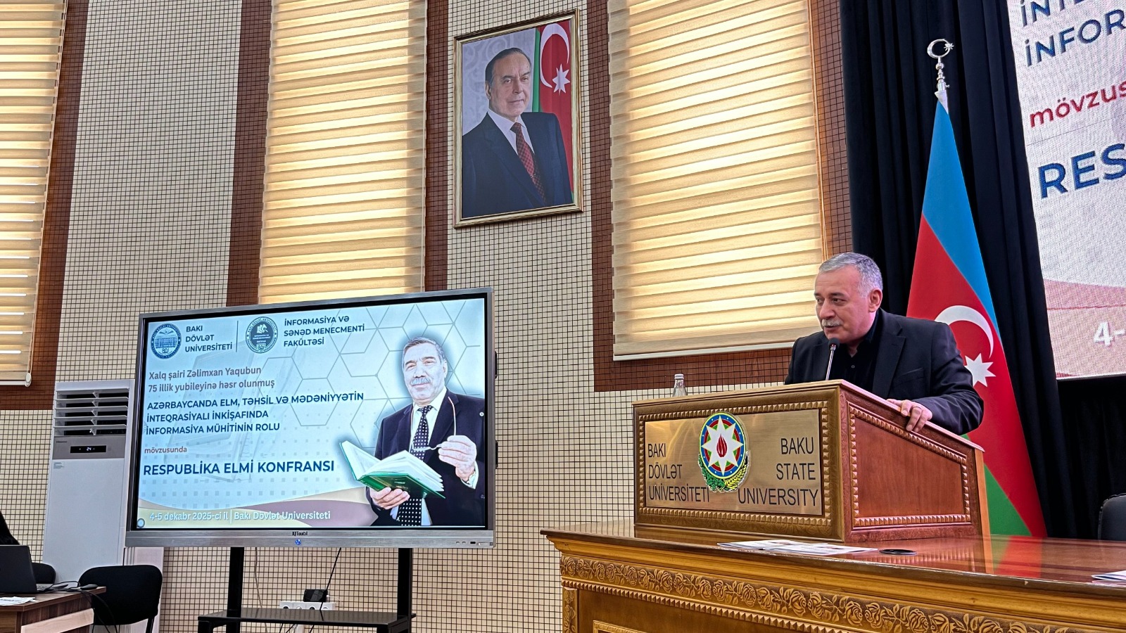 Bakı Dövlət Universitetində (BDU) İnformasiya və sənəd menecmenti fakültəsinin təşkilatçılığı ilə fakültənin məzunu - Xalq şairi Zəlimxan Yaqubun 75 illik yubileyinə həsr olunmuş "Azərbaycanda elm, təhsil və mədəniyyətin inteqrasiyalı inkişafında informasiya mühitinin rolu" mövzusunda Respublika Elmi Konfransı öz işinə başlayıb.