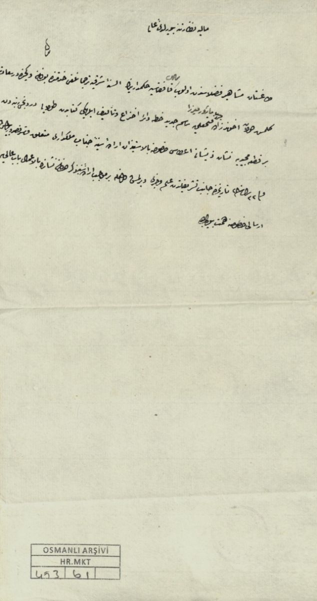 Dağıstan meşahir-i fazılasından olub memalik-i Kafkasya hükümdarının elsine-i şarkiyye tercümanlığı hidmetinde bulunan ve geçende Dersaadet'e gelmiş olan Ahundzade Major Mirza Fethali'ye resm-i cedid hattına dair ihtira ve telif eylediği kitabdan dolayı dördüncü rütbeden bir kıta Mecidiye nişan-ı zişanı itası hususuna bi'l-istizan irade-i seniyye-i cenab-ı mülkdari müteallik ve şerefsudur buyrulmuş ve fi 22 Rebiülevvel sene 280 tarihinde canib-i teşrifattan ilmuhaberi verilmiş olmağla ber-muceb-i irade-i seniyye zikr olunan nişanın bi'l-imal Bab-ı Ali'ye irsali hususuna himmet buyuralar deyü