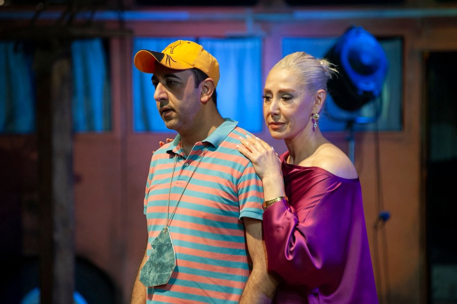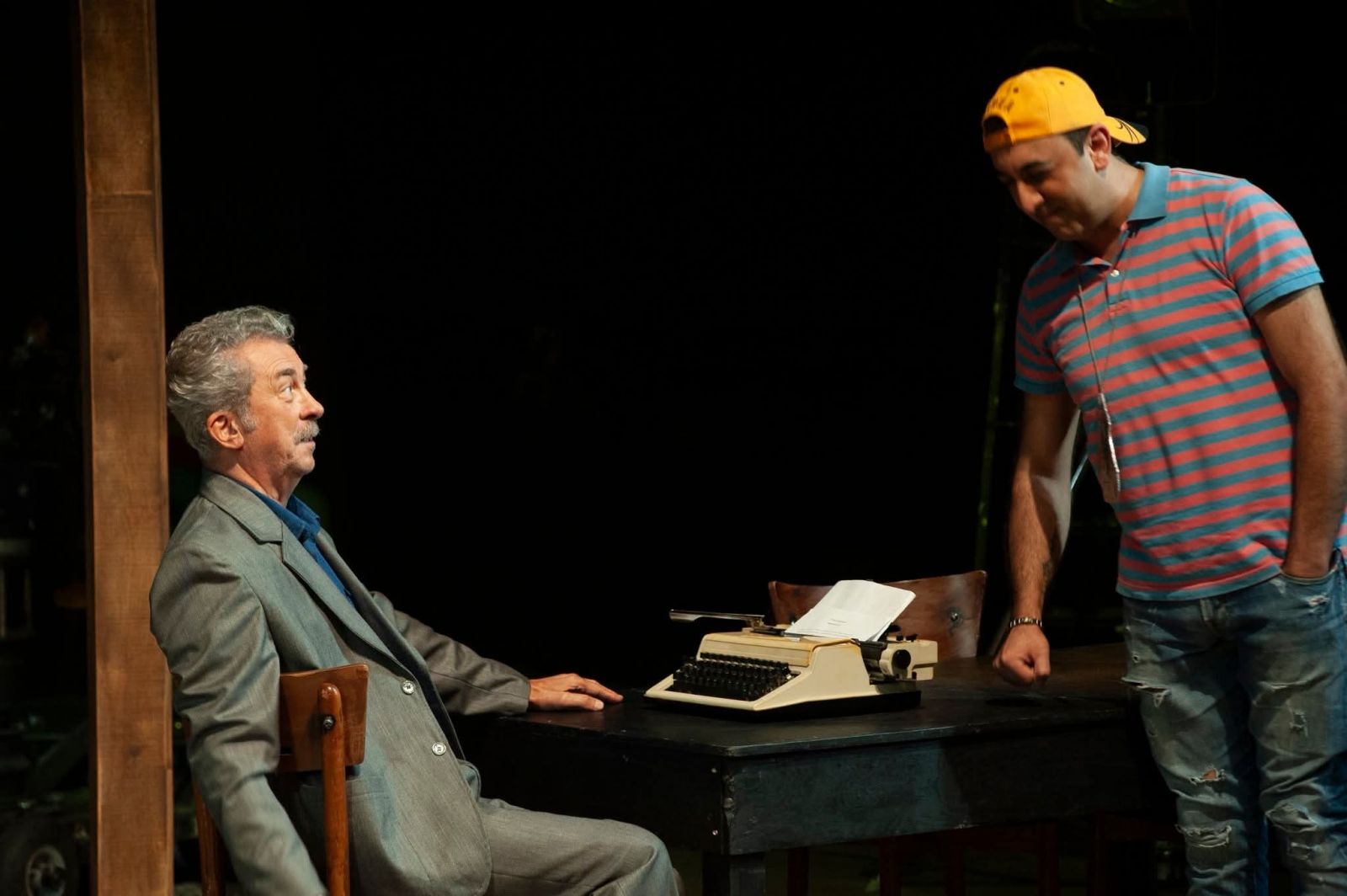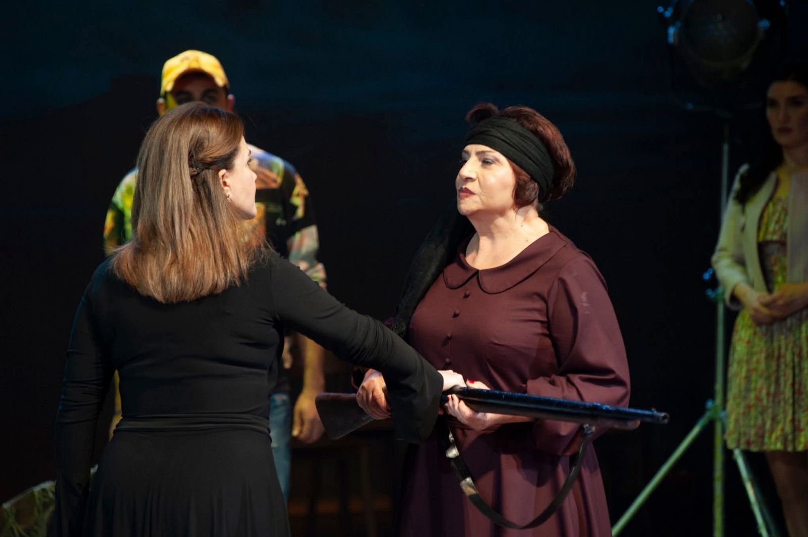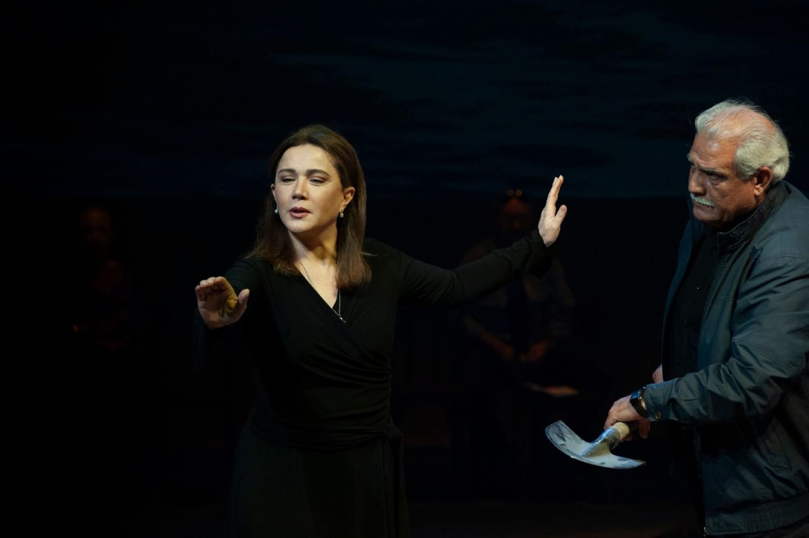 Bəhram Osmanov "Bayquş gəldi, yaxud bir az məhəbbətdən danışaq" tamaşasında iki müxtəlif zaman kəsiklərini çulğaşdırmaqla çətin bir vəzifəni öhdəsinə götürüb. "Bayquş gələndə" povestindən tamaşada yalnız Kamillə Nailə və Kamilin hər yayı bağda, nənəsi ilə keçirən gənc dostu iştirak edir - əsərdə hadisələr bu personajın dilindən, onun prizmasından təqdim edilir, tamaşada isə bu obraz bütün yayı balıq ovlayıb kənd içində satmağı digər iki dostundan daha yaxşı bacaran Vasifin adı ilə adlandırılıb. Tamaşanın süjetini formalaşdıran digər böyük nəsr əsərinin, "Qara paltarlı qadın" romanının hadisələri səhnədə daha böyük üstünlük təşkil edir. Bu roman keçən əsrin 80-90-cı illərinin özü ilə anlaşılmazlıqlar və buna görə də narahatlıqlar gətirmiş ab-havasından bəhs edir. Abşeronun balıq vətəgələrinin üstündə gedən qarşıdurmalar fonunda bacarıqlı balıqçılıqdan rəsmi vəzifəli şəxsə, qəsəbə idarəedicisinə kimi yüksəlmiş Cavanşirlə (Nurəddin Mehdixanlı) seçib-sevib evləndiyi ömür-gün yoldaşı Zəhranın (Mehriban Zəki) məhəbbəti tamaşanın da əsas mənzərəsini cizgiləyir. Bəllidir ki, Maqsud İbrahimbəyov əsərlərinin süjetlərinin xeyli hissəsini qəzet materiallarından götürürdü və bu, tamaşada əks edilib - tamaşaçı sanki qəzetin səhifələrini nəzərdən keçirdikcə müxtəlif hadisələrdən xəbər tutur, səhnədə baş verənləri izlədikcə tamaşaçını, yaxud qəzet mütaliəçisini ən çox tutan Cavanşir-Zəhra əhvalatı olur. Nurəddin Mehdixanlı ilə Mehriban Zəkinin yaradıcılıq yollarında bu ilk tərəf-müqabili təcrübəsidir. Lakin tamaşa boyunca müşahidə edilən iki təcrübəli, bacarıqlı, fərqli aktyor üslubunun təmsilçilərinin tandeminin sanki uzun illərin daha bir mükəmməl tərəfdaşlığıdır - teatr və kino dramaturqları, rejissorlar Nurəddin Mehdixanlı-Mehriban Zəki tandeminin səhnəmiz və yəqin ki, ekranımız üçün yeni bir tapıntı olduğunun fərqində olmalıdırlar. Bu tapıntını kəşf etmiş Bəhram Osmanovun haqqında bəhs etdiyimuz tamaşasına gəldikdə isə, Cavanşir-Zəhra xətti, başqa sözlə, Maqsud İbrahimbəyovun nəsr əsərlərinin səhnə versiyasının "...bir az məhəbbətdən danışaq" hissəsi Mehriban Zəkinin ilanı yuvasından çıxaran Zəhra, qara paltarlı qadın obrazına yanaşmasında mistik qatın qədərində qabardılması, iki aktyorun bir-birini son dərəcə üzvi şəkildə tamamlaması, müxtəlif məzmunlu dialoqlarından tutmuş, Cavanşirin Xəzər dənizində həlak olmasına kimi bütün mizanlarda, bütün səhnələrdə məzmunlu, inandırıcı, təbii aktyor oyunu, canlandırdıqları obrazları anlayıb sevmək bacarığı, kişi və qadın başlanğıclarının, bir-birinin həyatındakı əhəmiyyətin və hər birinin müstəqil təfəkkürlü şəxsiyyət olmasının fərqinə varmaq kimi daxili mədəniyyəti çox gözəl ifadə olundu. Razılaşın ki, sadalanan keyfiyyətlər müasir dövrün insanları arasında təbii gedişat, özü-özünə mümkün olan səciyyə dərəcəsindən təəssüf ki, xeyli aşağı düşüb. Bu mənada "Bayquş gəldi, yaxud bir az məhəbbətdən danışaq" tamaşasının "...bir az məhəbbətdən danışaq" hissəsi ayrıca diqqətəlayiq səhnə əsəri kimi dəyərləndirilməyə layiq rejissor və aktyor işidir.