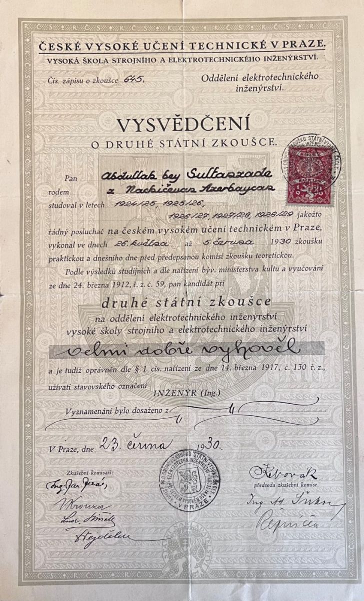 Bu təklifə sevinən Abdulla 26 oktyabr 1924-cü ildə Praqaya doğru yola düşür. Oradakı bolşevik inqilabından qaçan rus ziyalıların dəstəyi ilə universitetə müraciət edir, nəticədə 1924-cü ilin noyabr ayında müsbət cavab alır. O, Praqada universitetin elektrik bölümünə daxil olur. Bir müddət dağıstanlıların dəstəyi ilə dolanan Abdulla İbrahim Talidən gələn məktubdan sonra oradakı türk səfirliyində çalışır. Səfir Vasıf Çınar bəy və katib Zəki bəy ona xoş münasibət göstərir. 1927-ci ildə imtahanlarını uğurla verərək birinci diplomunu alır. Bu illərdə İmelda adında bir xanımla eşq yaşayır. 1930-cu ilin iyun ayında Abdulla Sultanzadə Çex Texniki Universitetindən ali elektrik mühəndisi diplomu alaraq məzun olur. O, qısa zamanda Türkiyə ilə də yaxşı əlaqələri olduğuna görə müəllimlərinin də tövsiyəsilə XIX əsrin ikinci yarısında qurulan və 1927-1940-cı illərdə Çexoslovakiyanın ən böyük mühəndislik şirkəti olan Kolben-Danekdə işə başlayır. Bu şirkətin Türkiyə ilə ticarətə böyük marağı vardı. Ona görə də 1931-ci ildə o, dörd nəfərlik heyətin tərkibində İstanbula göndərilir, əməkdaşlıq görüşləri keçirir. Lakin dünya iqtisadi krizisi nəticəsində Kolben Danek şirkəti beş yüzə yaxın insanı işdən çıxarır. Onların arasında Abdulla Sultanzadə də olur.