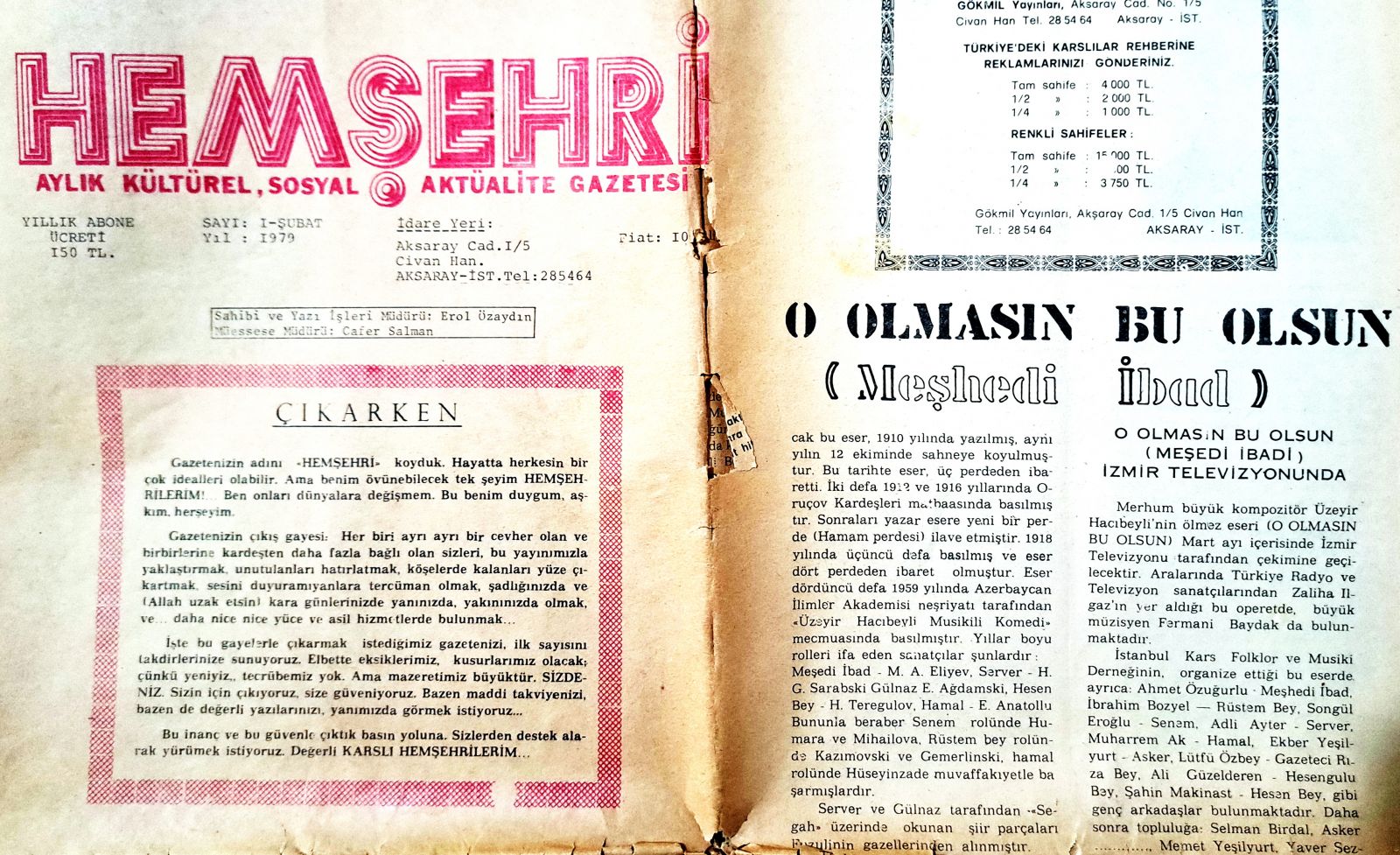Noyabr ayının 22-si İstanbulun Yeniköy qəsəbəsində vaxtilə İrəvanın Talın bölgəsindən Qarsa köçmüş Hüseyn xan Talınlının qızı Güvən xanımla görüşdüm. Qərbi Azərbaycandan köç edən mühacirlərlə bağlı araşdırma apardığım üçün Hüseyn xanın həyat hekayəsini ailə arxivi əsasında öyrənmək istəyirdim. Güvən xanım atasına aid nadir fotoşəkilləri, sənədləri təqdim edərkən, illərdir adını eşitdiyim, amma heç bir kitabxanada tapa bilmədiyim "Hemşehri" adlı qəzetin iki nömrəsini gördüm. Bu qəzet barədə mənə ilk dəfə tədqiqatçı Cumhur Turan məlumat vermiş, mütləq axtarıb tapmağımı istəmişdi. Təsadüfdən həmin qəzetin iki sayı qarşımda idi. Qəzeti musiqiçi Erol Özaydın çıxarıb və səhifələrdə mühacirətdəki Azərbaycan musiqi ifaçıları barədə maraqlı məlumatlar verib.